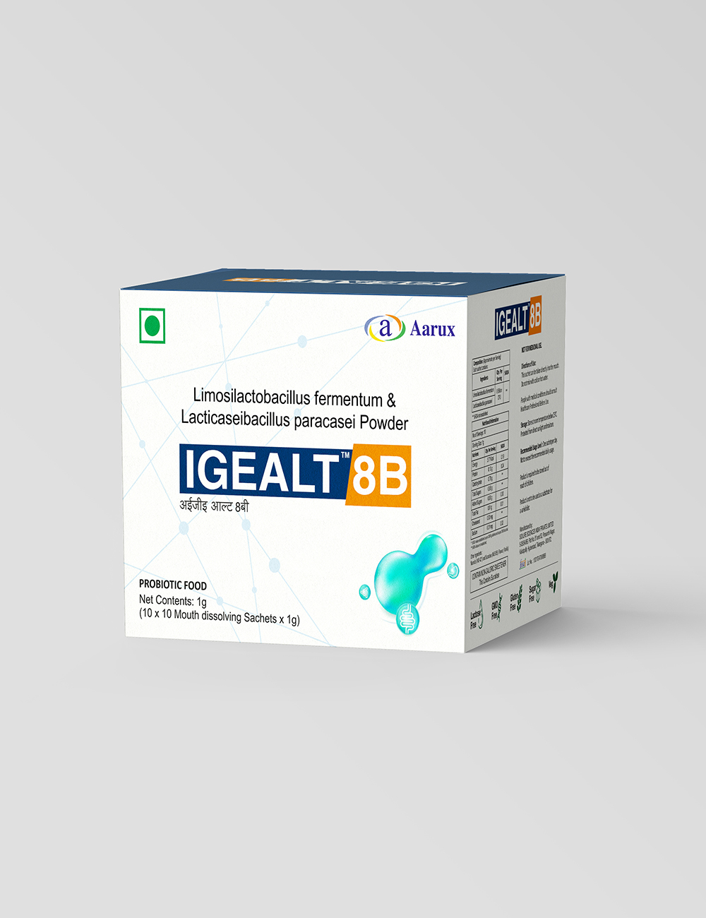 IGEALT 8B/16B is a cutting-edge formulation containing Limosilactobacillus fermentum and Lacticaseibacillus paracasei powder. It is a next-generation therapy targeting both gut and skin health, designed to:
